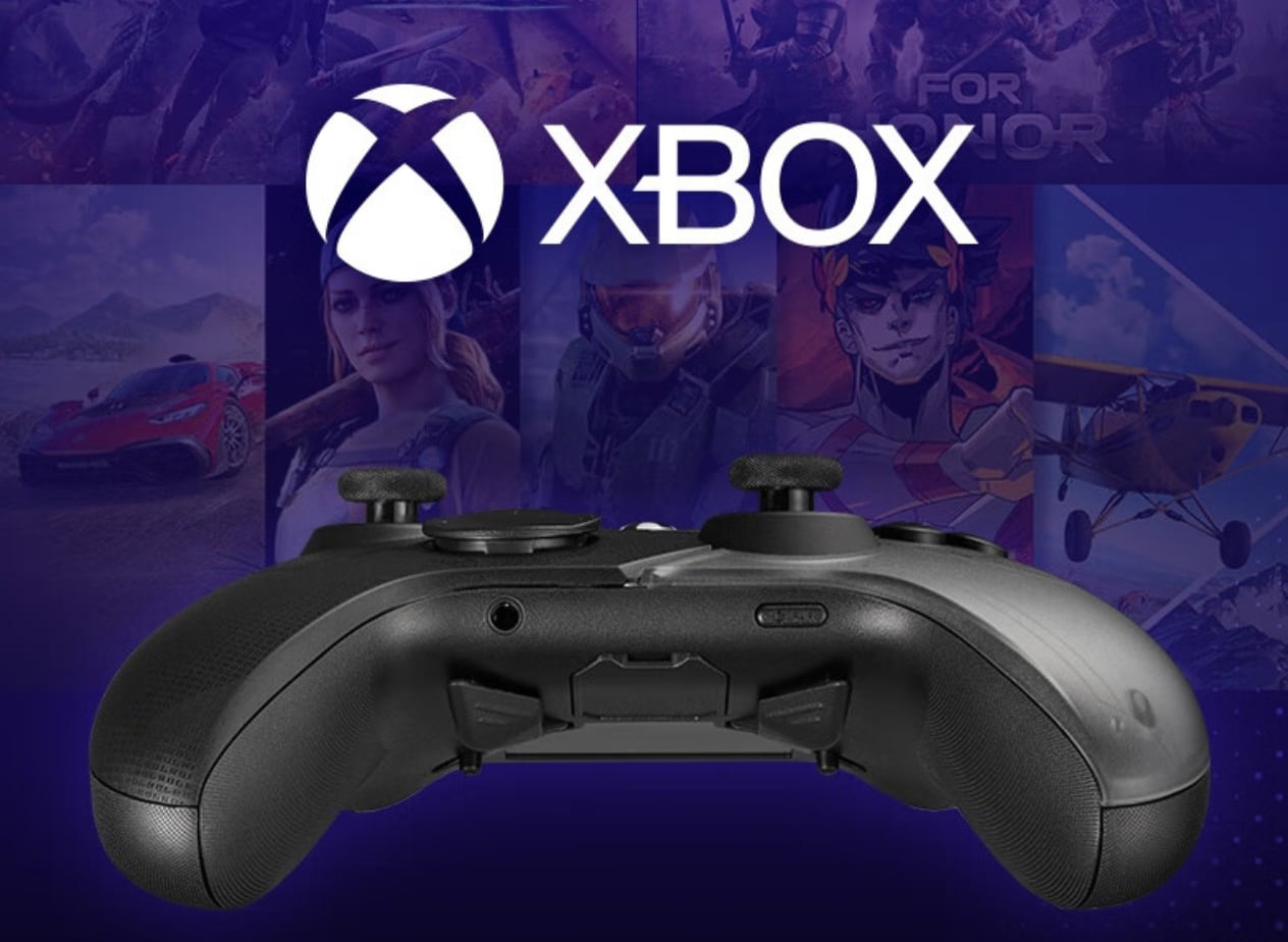 新款手柄采用人体工学的外形设计,机身背面配备了 4 个背键,上面覆盖交叉条纹,方便玩家点按操作。手柄配备了扳机震动马达和混合方向键,侧面配备了两段式扳机按键,可以自由调节短键快速模式或全键程模式。