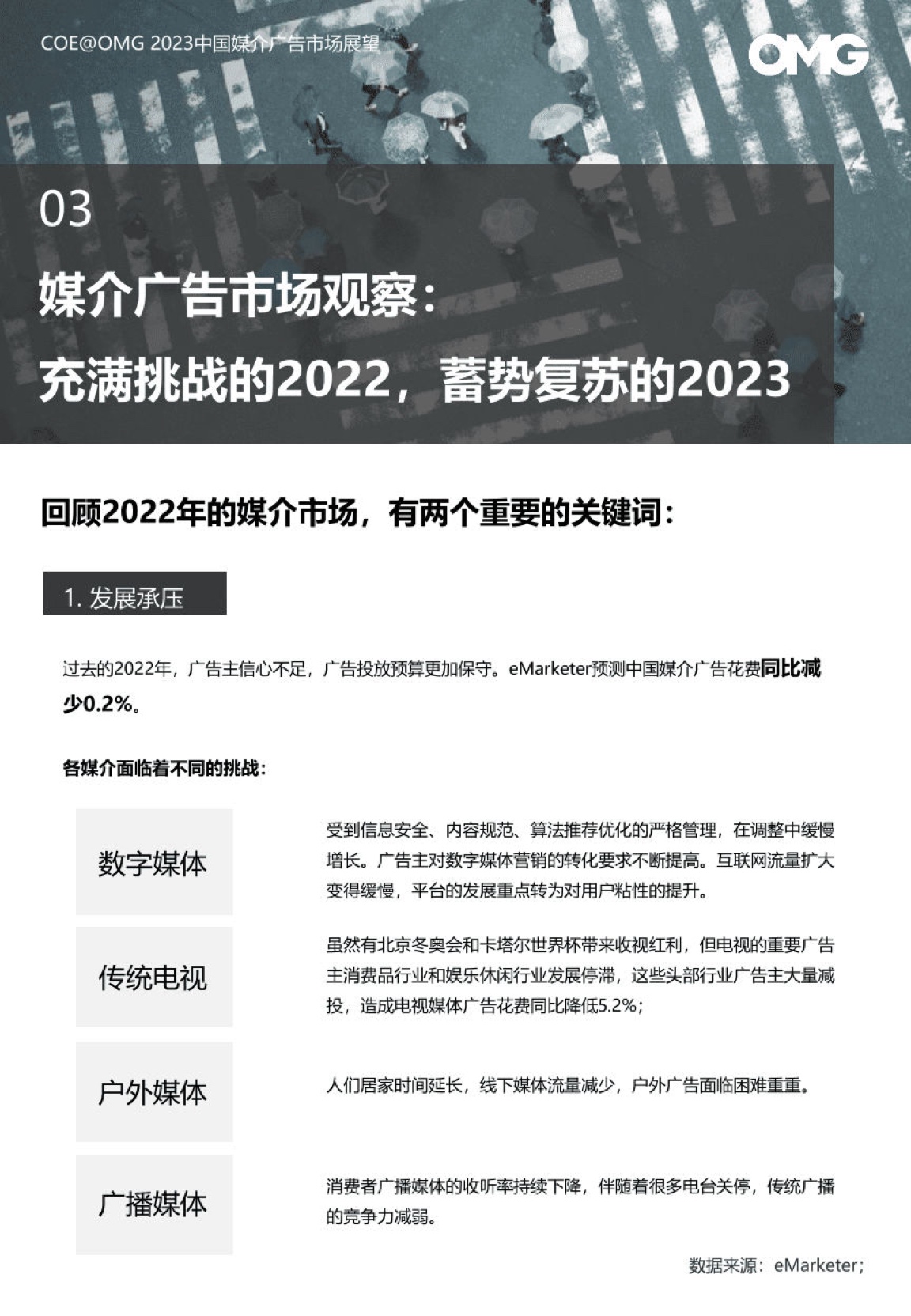 回顾2022年,是充满挑战和不确定性的一年。2023年将蓄势复苏,媒介广告市场将面临更多机遇和挑战。
