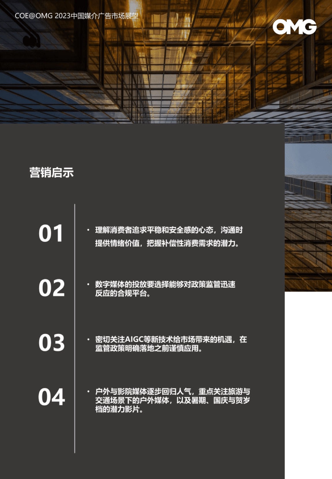 在营销策略上,我们需要理解消费者追求平稳和安全感的心态,沟通时提供情绪价值,把握补偿性消费需求的潜力。此外,数字媒体的投放需要选择能够对监管迅速反应的合规平台。在监管明确落地之前,我们还需要密切关注AIGC等新技术给市场带来的机遇,在谨慎应用的前提下把握机会。