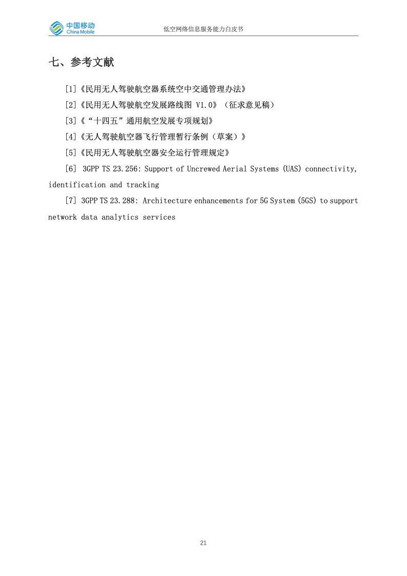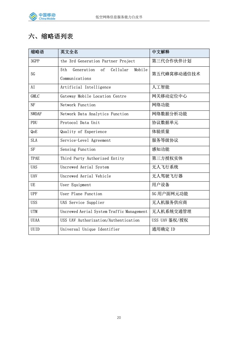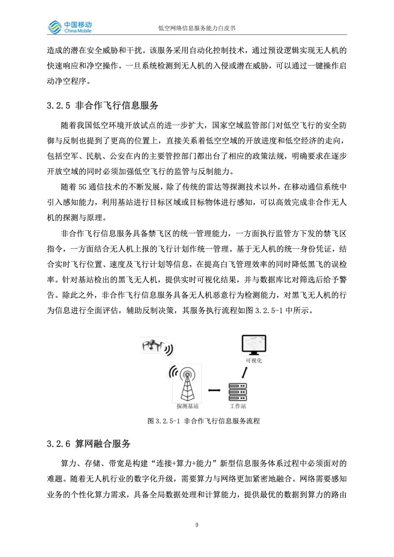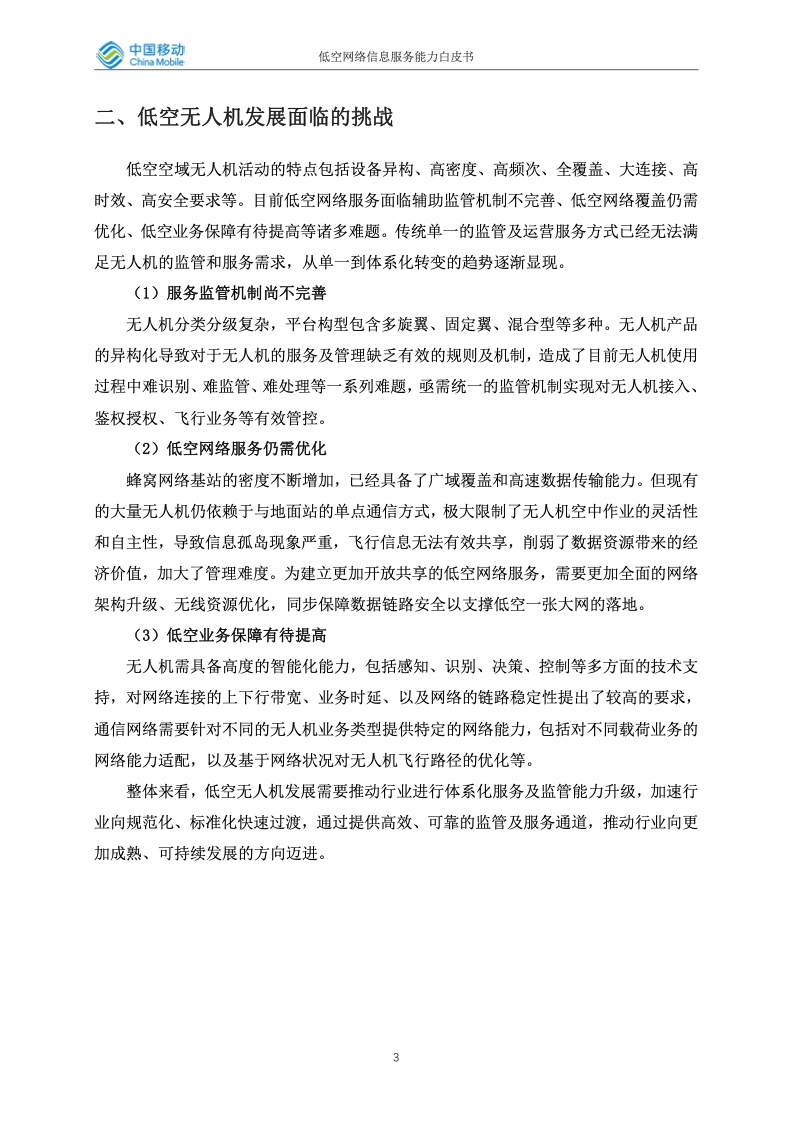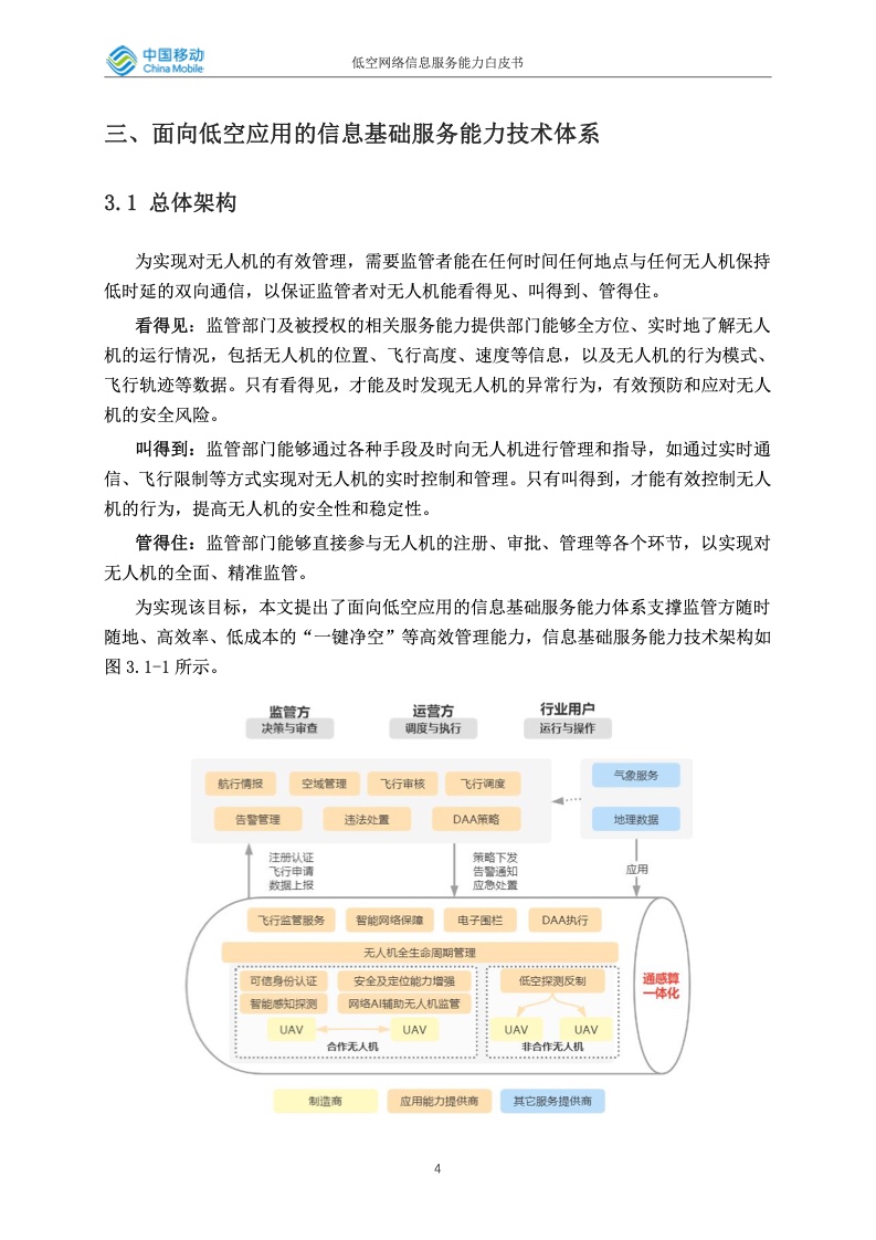 3GPP自 R17版本开始,开展5G网络对无人机业务的持续定向适配和能力增强,中国移动研究院牵头了R19 SA1无人机业务需求研究及规范制定,推动5G网络对无人机航路监测与优化、无人机避障的深度支持。中国移动致力于打造面向无人机应用的全场景全能力低空网络,既面向无人机提供高稳定性、高质量网络服务,保证无人机可以全域飞、安全飞、智能飞;又面向监管需求方要求,实现对无人驾驶航空器的有效管理,使得监管方能在任何时间任何地点与任何无人机保持低时延的双向通信,以保证监管方对无人机能看得见、叫得到、管得住。