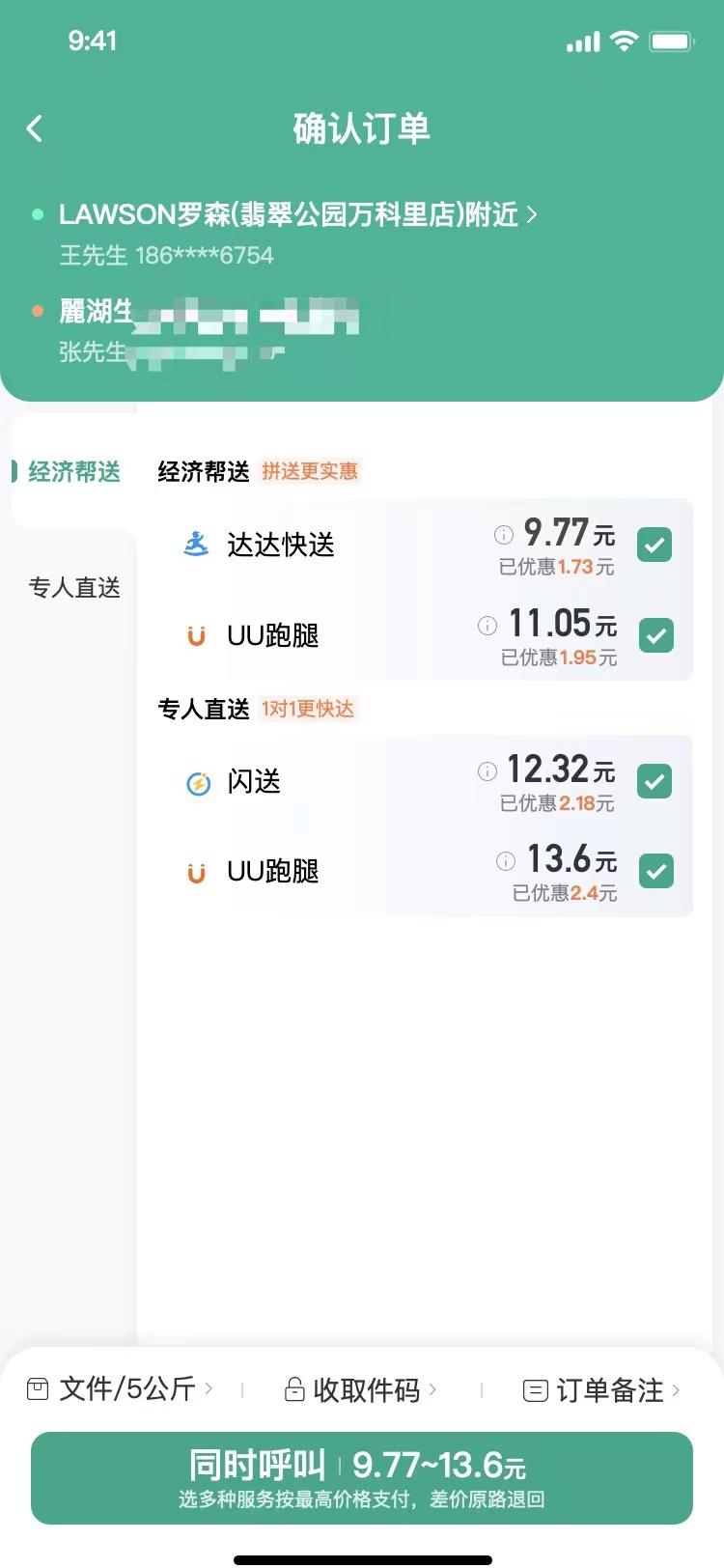 滴滴用户可以在平台上一键呼叫多家快送服务商,根据各服务商的实时价格以及自身的时效需求作出选择;也可以同时选择多家服务商下单,滴滴快送将根据各服务商的接单速度为用户完成更快速的服务匹配。