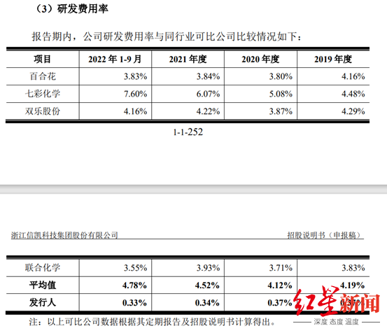 可以看出,报告期内,信凯科技研发费用率显著低于同行业可比公司。信凯科技对此解释称,主要因为公司的研发活动主要集中于产品开发、检测技术的研发等。公司研发特点与同行业可比公司存在较大差异。