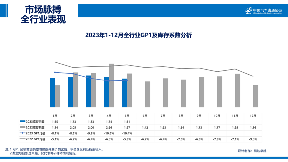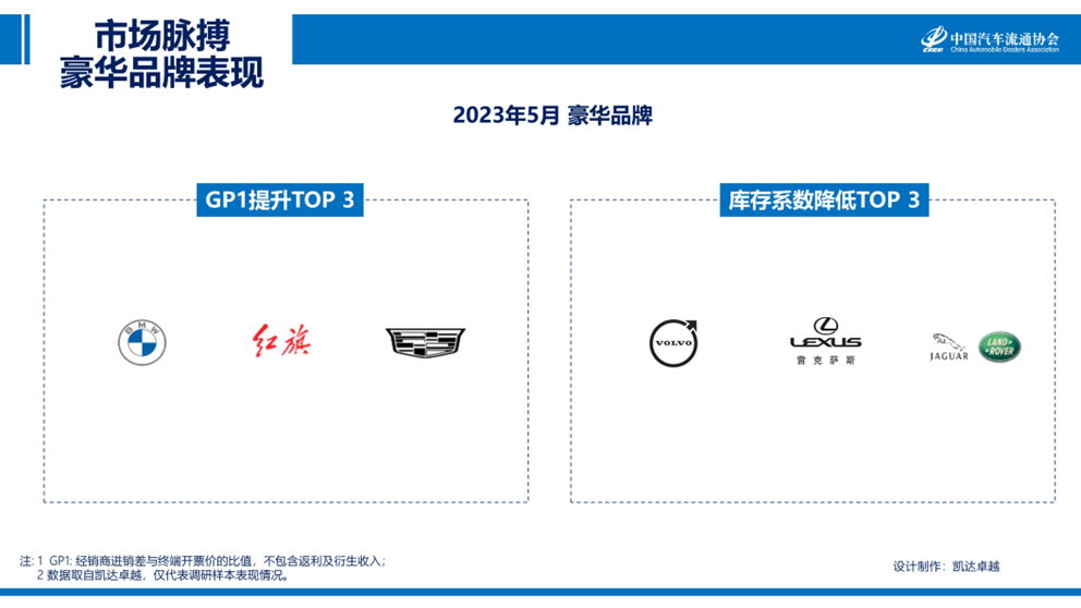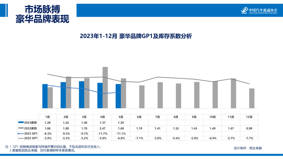 2023年5月,豪华品牌库存系数下降至1.29;GP1小幅回升至-11.1%。