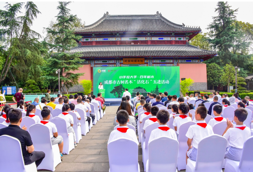 2023年6月13日,距离第31届世界大学生夏季运动会还有45天,为助推“爱成都 迎大运”氛围,由四川省绿化委员会办公室、四川省林业和草原局指导,成都市绿化委员会办公室、成都市公园城市建设管理局主办,成都市民族宗教事务局、成都市文化广电旅游局、成都市教育局协办,成都市武侯区绿化委员会办公室、成都市武侯区公园城市建设和城市更新局、成都武侯祠博物馆、成都市公园城市园林绿化管护中心承办的“小手拉大手•百年树木”——成都市古树名木“活化石”五进活动在武侯祠博物馆成功举行。来自各活动单位和相关社区、大专院校、景区、宗教场所、文保单位代表及学生代表100余名相关人员参加了活动。