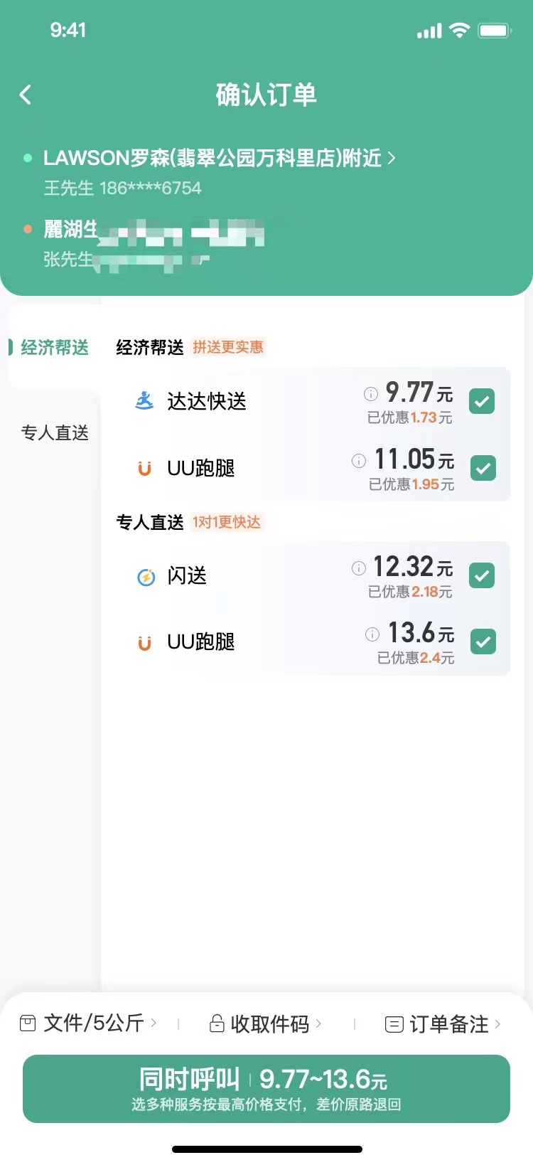 滴滴用户可以在平台上一键呼叫多家快送服务商,根据各服务商的实时价格以及自身的时效需求作出选择;也可以同时选择多家服务商下单,滴滴快送将根据各服务商的接单速度为用户完成最快速的服务匹配。