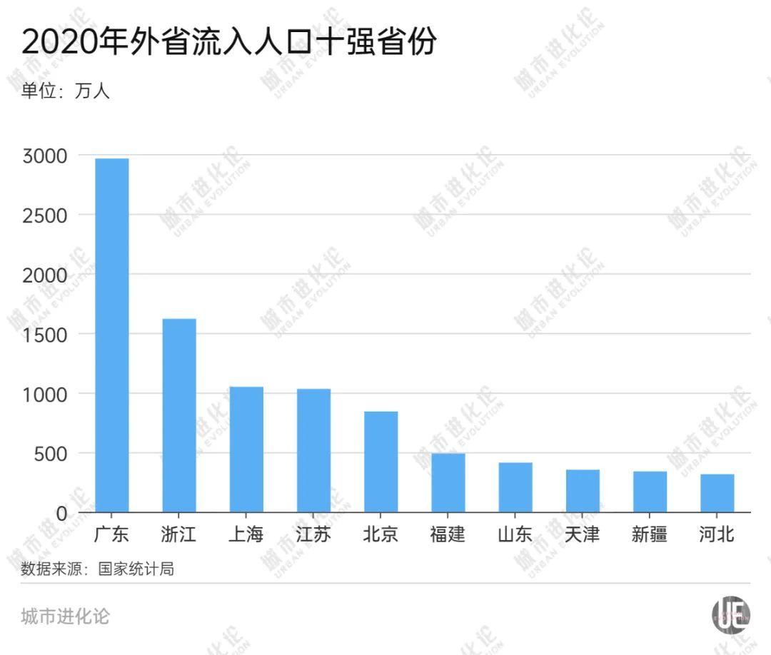 一种可能的解释是,外来人口一般以年轻人为主,比如广东尤其是广州、深圳等城市,都属于全国“最年轻”的城市阵营。