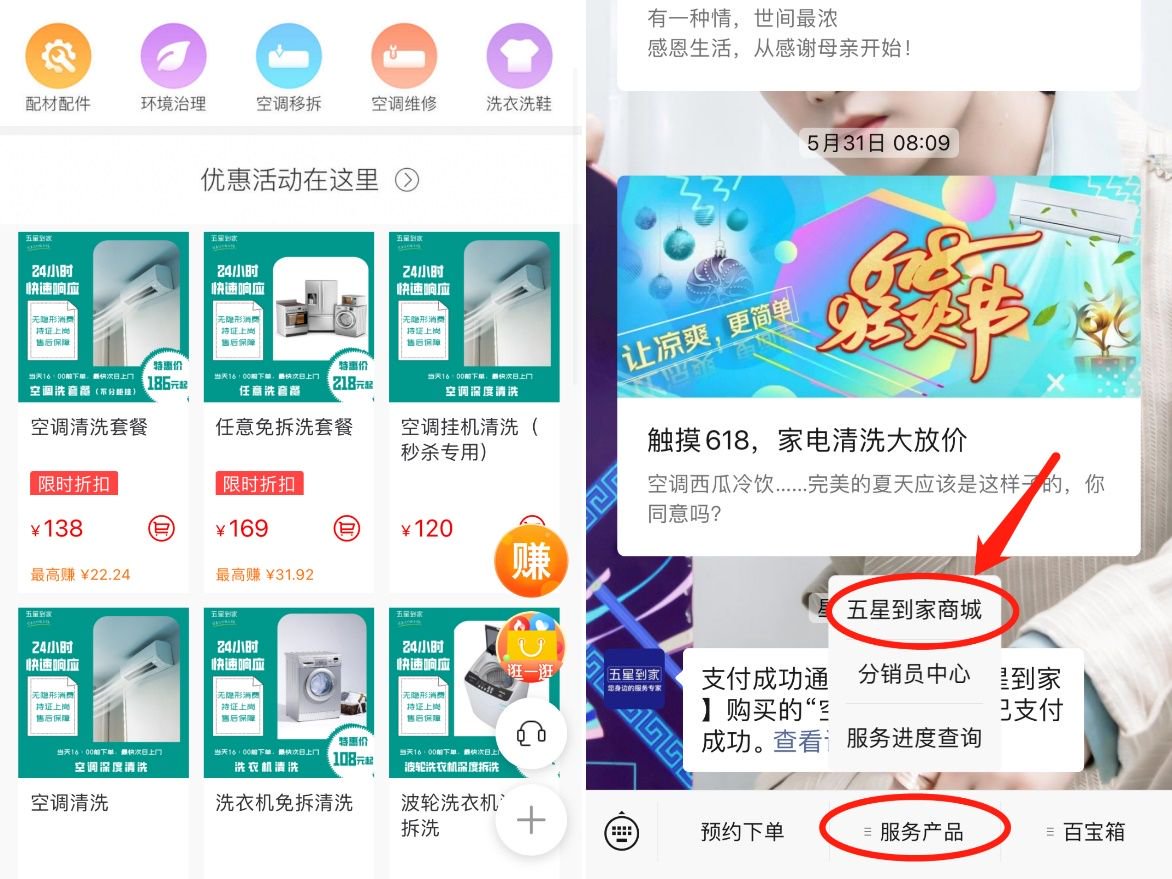 为应对换季空调清洗需求,推出五星到家公众号商城的空调套餐洗活动,关注五星到家公众号点击预约下单,进入商城预约2件空调清洗套餐,商城活动价138元;3件空调清洗套餐,商城活动价198元、4件空调清洗套餐,商城活动价278元。