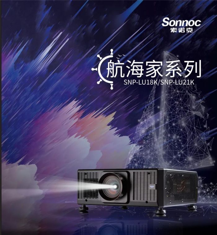 索诺克新品航海家系列采用激光光源,光源本体工作寿命为20000小时,MCL光源设计更加稳定,可以保障户外楼体秀、重要演出、会议时工作平稳运行。同时,高效的激光光源结合DLP显示技术,可以呈现高亮度和高对比度动态图像。