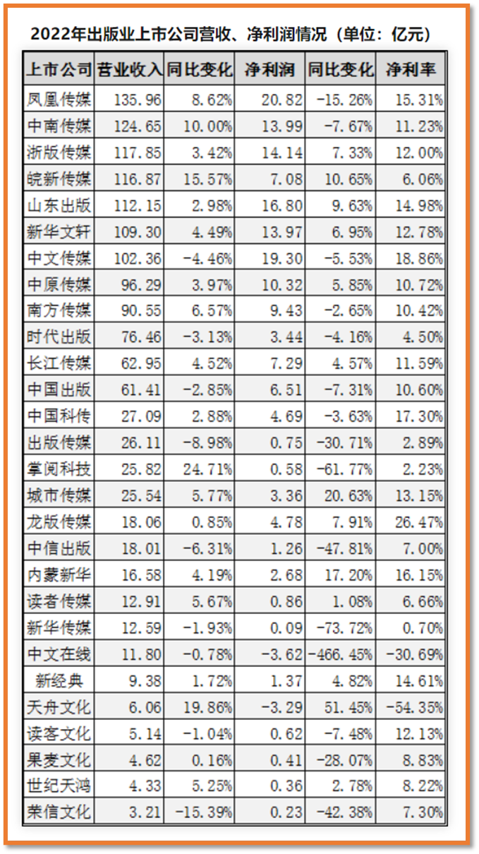 从2022年28家在A股上市的出版企业财报来看该行业的特征,就是营收规模可能很大,但净利润表现中位数多数在10%上下,不算高,赚的是辛苦钱。