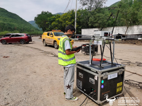 8月4日11点15分,在工业和信息化部的统筹指挥调度下,一架搭载北京移动应急通信系统的DG-M20系留式无人机在北京市受灾严重的昌平区流村镇高崖口村迅速升空。