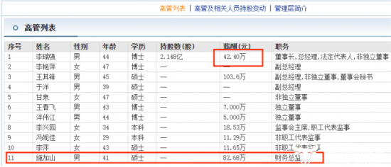 值得一提的是,东方财富网信息显示,施加山去年在公司获得的薪酬为82.68万元,这个薪酬还算不错,比公司董事长、总经理李瑞强的薪酬高出将近一倍,李瑞强的薪酬为42.4万元。