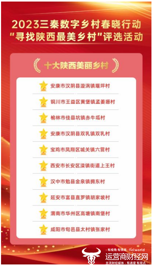 近日,由陕西省乡村振兴局指导,中国电信陕西公司、陕西广电融媒体集团共同主办的2023三秦数字乡村春晓行动系列活动之一的“寻找陕西最美乡村”活动评选结果正式揭晓。