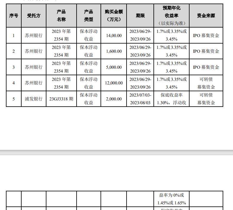 根据7月18日公告,华亚智能使用部分闲置资金购买了理财产品,其中IPO募集资金约8000万元、可转债募集资金约1.4亿元。也即,上述两轮募资仍有较多资金尚未使用。