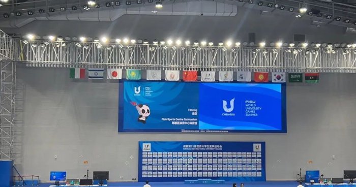 卡莱特低延时高端显示解决方案,为郫都击剑场馆中心呈现一个高清流畅、综合全面的计分大屏,让赛事资讯更加清晰、及时、准确地传递。